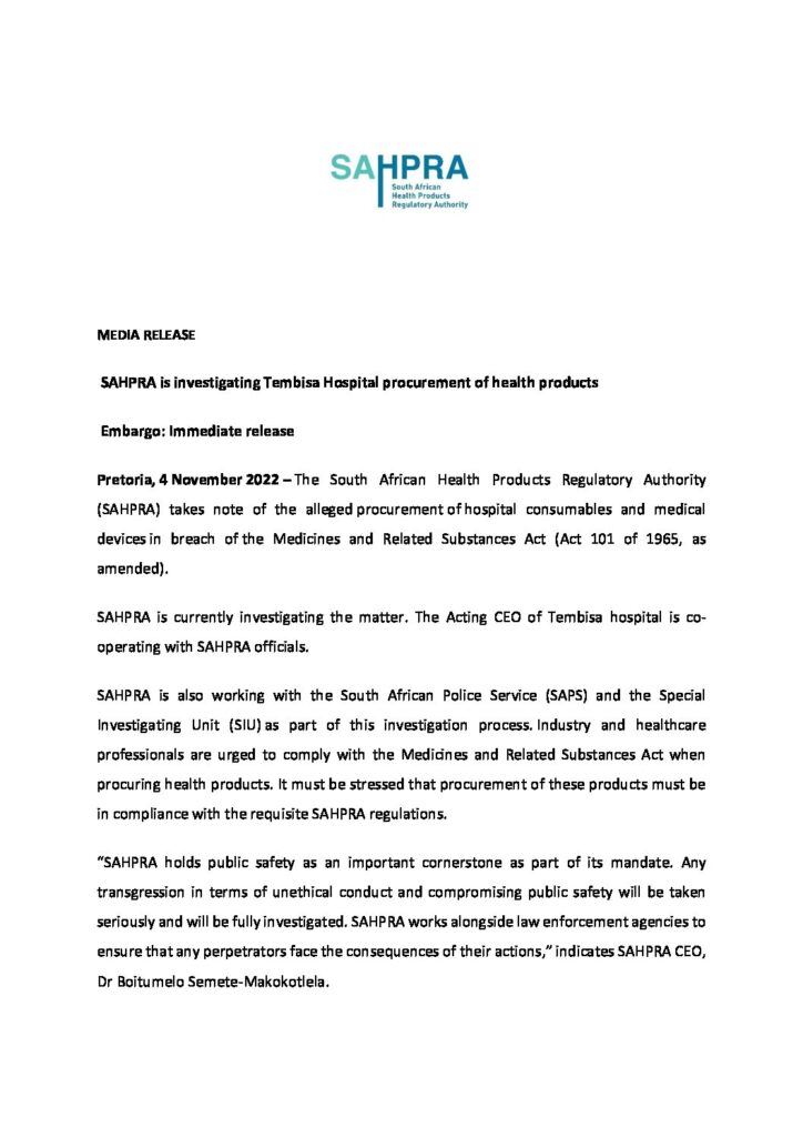 SAHPRA-is-investigating-Tembisa-Hospital-procurement-of-health-products--500x...